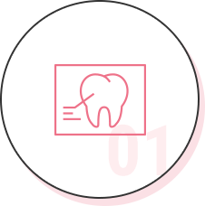 CT撮影により口腔内検査を行い、それらを分析、シミュレーションし精密検査を行います。徹底した事前診査を心がけております。